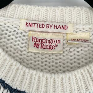 HUNTINGTON RIDGE Women’s L Vtg Hand-Knit Sweater Cream Floral Boho Cottagecore