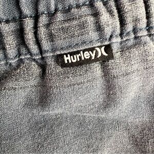 HURLEY BOARD SHORTS w/tie and elastic waist. Size Medium. Gray w/blue stripes.