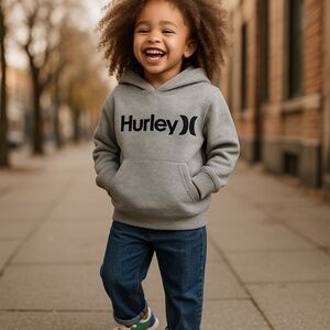 HURLEY BOYS GRAY LOGO PULLOVER HOODIE SWEATSHIRT