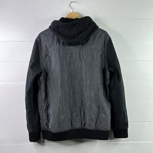 HURLEY Black Gray Polyester Cotton Snap Button Hooded Jacket Size Large