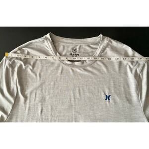 HURLEY Gray Long Sleeve Rash Guard w/Sleeve Graphics Mens size XL. Featuring a lightweight fabric, stretch, quick drying, logo graphics on left sleeve and chest logo.