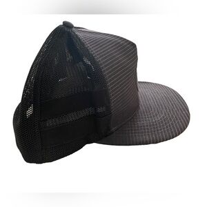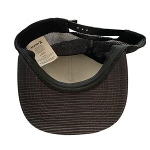 This is a HURLEY Gray Striped Hat Snapback Adjustable Cap, One Size Fits Most. 100% polyester.