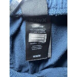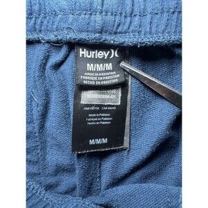 Hurley Mens Shorts Size Medium in Navy Blue. Features a comfortable elastic waistband with adjustable drawstring, side pockets, and a back patch pocket. Bold Hurley logo on the left leg. Measurements shown in photos (approx. 16 waist flat, 18 outseam, 9 inseam, 12 rise). Soft cotton-blend fabricgreat for lounging or casual wear. Gently pre-owned with no flaws. See all photos for details.