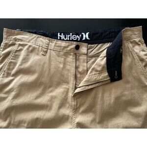 HURLEY Tan Lightweight Cotton Flat Front Shorts size 38. Featuring a soft/lightweight fabric, slash front/rear pockets, stretch and a zip fly closure. Perfect for the Spring/Summer seasons.