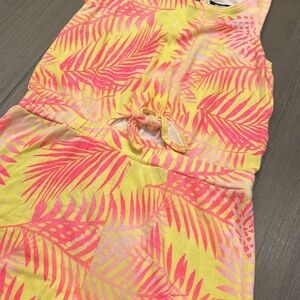 Brighten up your child's wardrobe with this vibrant pink and yellow romper. Perfect for sunny days and playful adventures.