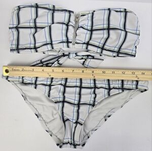 HURLEY Y2K Swim Suit Strapless Bikini Scrunch Butt White Multicolor Women Size M