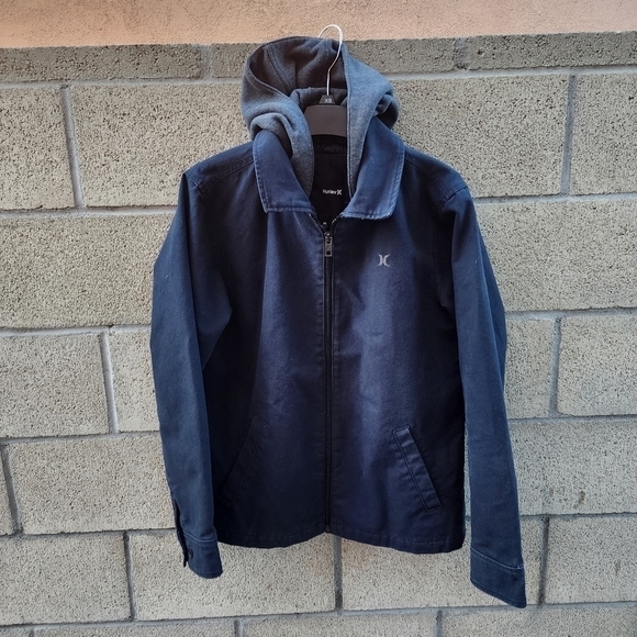 Hurley Hooded Canvas Jacket Grey Mens Size M