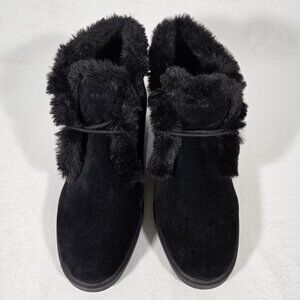 HUSH PUPPIES Bailey BLACK Suede Chukka Faux Fur Bootie Women Size 8.5 WIDE LARGE