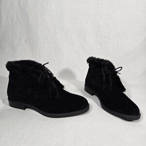 HUSH PUPPIES Bounce Bailey Staple For Your Everyday Wardrobe Grunge Whimsigoth Witchy Super Versatile BLACK Suede Leather Chukka Faux Fur Booties Women's Size 8.5 WIDE LARGE. #Effortless-Stylish&Comfort#DressedUp&DressedDown#