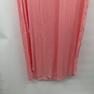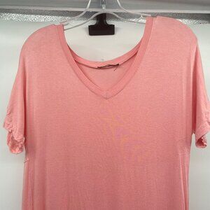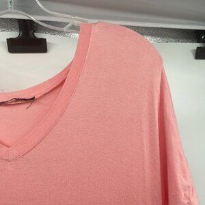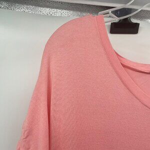 HUSKARY Womens Maxi T-Shirt Dress V-Neck Short Sleeve Pink Size Large