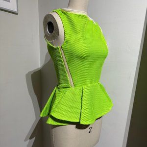HUSSEIN CHALAYAN TOP GREEN ZIPPER RUFFLE SIZE XS