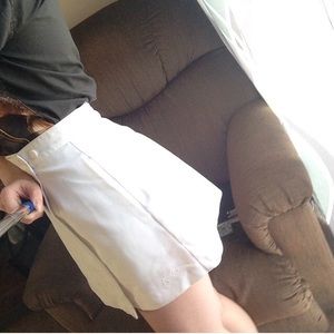 this white tennis skirt is a wrap around piece with 6 buttons for adjustable waist size! made by kaelin sports gear- tags say size 8