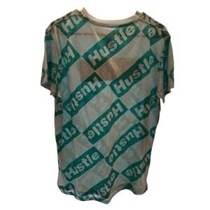 YOU ARE LOOKING AT A LAUNDER LARGE TEAL COLOR SHIRT WITH THE WORD HUSTLE.IT IS IN GREAT SHAPE!IT IS PIT TO PIT 21 INCHES AND 28 INCHES LONG.