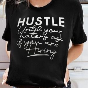 “HUSTLE UNTIL YOUR HATERS ASK IF YOU'RE HIRING” BLACK T-SHIRT SIZE XL