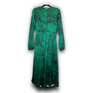 Marbelized swirls of emerald top off this show-stopping satin jumpsuit from Hutch. A versatile tie front can be worn wrapped around and tied in back for more coverage, or tied in front for a dramatic plunge neckline.