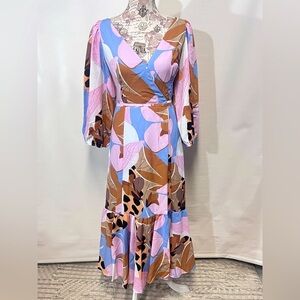 HUTCH, BLOOM Floral balloon sleeve midi wrap dress size M.