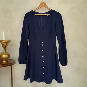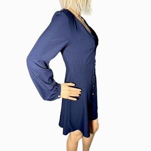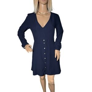 HUTCH Designer Button Front Mini Dress Navy Long Sleeve V-Neck Womens Sz S 4