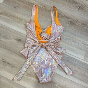 HUTCH Marco One Piece Orange Metallic Swimsuit Size Small