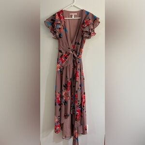 HUTCH Midi Ruffle Wrap Dress Women's Small (2-4) Wrap Tie Waist Floral guest