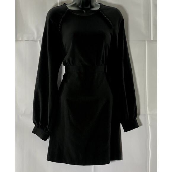 HUTCH Women's Black Solid Button-Shoulder Detail Long Sleeve Mini Dress SZ 8