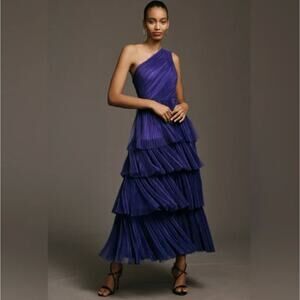 Crafted from beautifully pleated tulle, the Hutch Xala Dress stuns with a graceful one-shoulder neckline and an elegantly tiered pleated skirt.