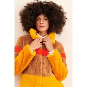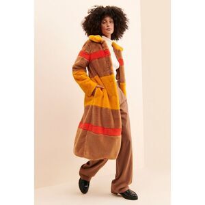 HUTCH by Anthropologie Colorblock Stripe Faux Fur Coat MSRP $338 “🔥SELLING AS IS