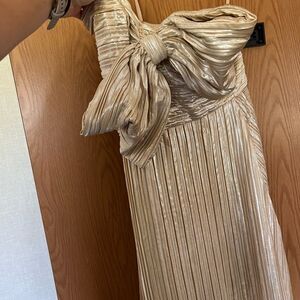 Hutch x Anthropologie gold strapless bow shine midi dress. There is what seems a little stain on upper inside but not noticeable when wearing. Otherwise excellent condition