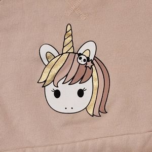 Soft cotton fleece sweatshirt printed with adorably whimsical unicorn graphic. Organic cotton. Size 6-12 months. No returns.
