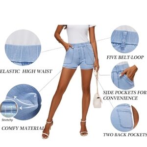Features: high waisted jean shorts for women, elastic waist short jeans for women, womens pull on jean shorts, womens plus size denim shorts, summer lounge shorts, shorts for teen girls, women's denim shorts, stretch jeans for women tummy control, womens beach vacation outfits
