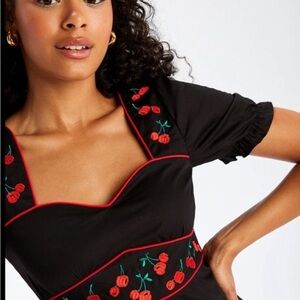 Short sleeves, cherry print, knee length Great condition