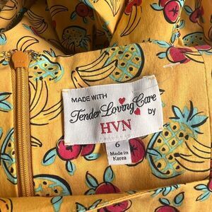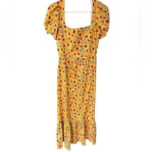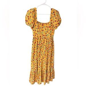 Designed with a '60s-inspired flair HVN's playfully printed midi dress is the perfect option for breezy summer days and warm nights. Crafted from yellow cotton into a square-neck silhouette it's embellished with a ruffled skirt and dainty puffed sleeves.
