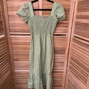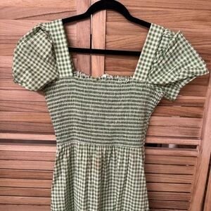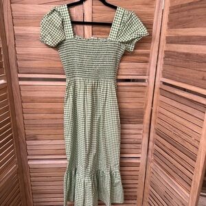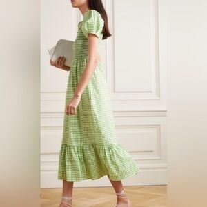 HVN Green Gingham Cotton-blend Poplin Maxi Women's Dress.