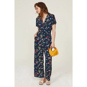 HVN “Rodeo Gia” Jumpsuit in Blue with Barn and Horse Rider Motif in Blue – Size 0