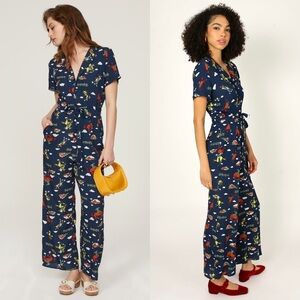 HVN Western Rodeo Print Short Sleeve Button Up Tie Waist Ankle Crop Jumpsuit 12