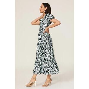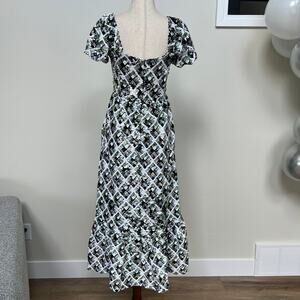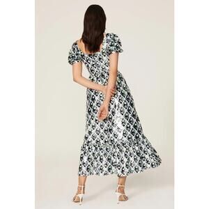 Colorful sequins form a classic argyle pattern on this puff-sleeved HVN dress that's a real delight.