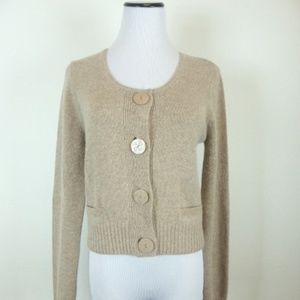 HWR ANTHROPOLOGIE Angora WOOL cropped tan cardigan sweater M