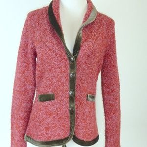 HWR for ANTHROPOLOGIE red pink brown marled wool cardigan shawl Sweater M velvet