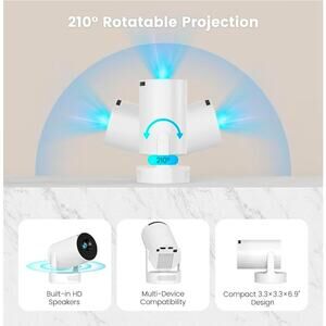 Mini Portable Projector with Wifi6 and Bluetooth, 4K Projector Support 5w Sound Base Speaker, 160 ANSI, Android 11, Auto Vertical Keystone 210°Rotatable Proyector for Home Bedroom Outdoor HY300 ULTRA