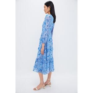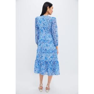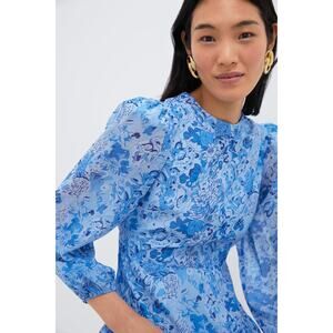 HYACINTH HOUSE Blue Multi Abstract Floral Rosalind Ruffle Midi Dress Size M NWT