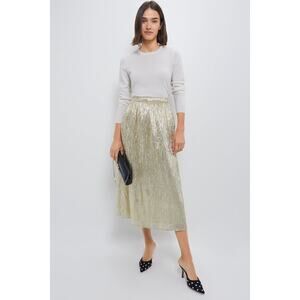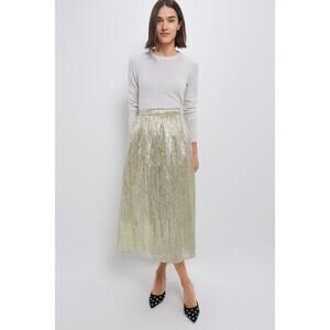 HYACINTH HOUSE Gold Metallic Plisse Gloria Maxi Skirt Size XL NWT