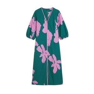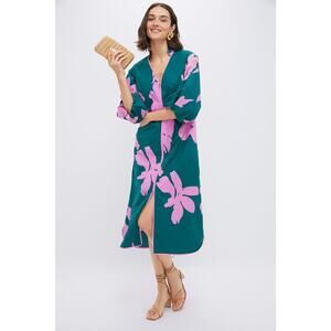 HYACINTH HOUSE Hunter Green & Pink Floral Arem Caftan Size M NWT
