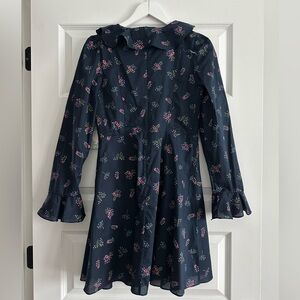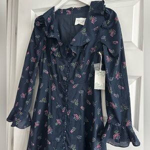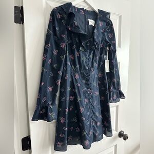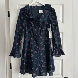 HYACINTH HOUSE Navy Floral Ruffle Neck Norah Mini Dress NWT