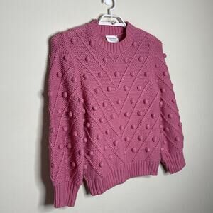 HYACINTH HOUSE Punch Pink Pom Pom Lainey Sweater Chunky Knit Bauble TuckerNuck M