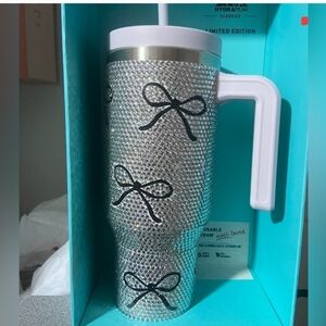 🔹️HYDRAPEAK 🔹️40 OZ Limited Edition Silver Rhinestone Bling Black Bow Tumbler