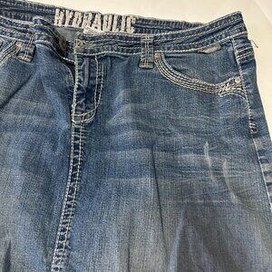 Hydrqulic Long Denim Maxi Jean Skirt Women’s Size 14 Distressed Boho Cottage Core