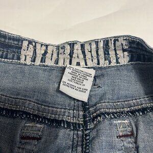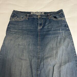 HYDRAULIC Jean Skirt Womens size 14 Maxi Denim Zip Fly Y2K back slit Embroidery