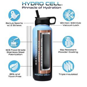 * STYLE: Purchase Includes Stainless Steel Bottle, Screw Cap (100% Airtight), Bonus Sports Cap with Straws (Cold Temp ONLY). Hydro Cell offers the largest selection of matching Paracord Handles, Bottle Boots, and Color Replacement Caps: Sold Separate, Linked Below. Customize your Hydro.