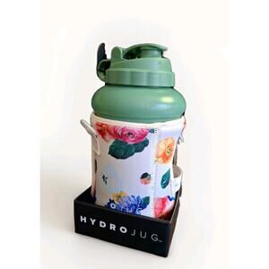 HYDROJUG Water Hydration Bottle Green with Floral Print Sleeve & Straw 73 Oz NEW