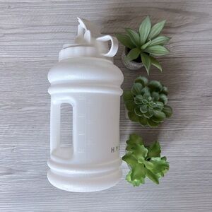 HYDROJUG Pro Jug. Color White. Holds 73 ounces. Included straw lid. Sanitary flip up straw. Large integrated handle. Shatterproof. BPA Free. Dishwasher safe.
