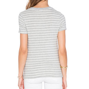 HYE PARK and LUNE Harper short sleeve top, gray with white stripes. This brand is often worn by celebs, is made from the highest quality fabric by Lune Culture and is designed by world famous model, Hye Park. You would find this brand in stores like shopbop, Revolve and Nordstrom's.